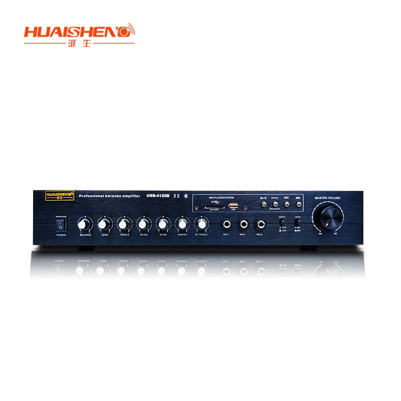 1.产品型号: USB-4120B 2.额定功率: 80 70W 3.频率响应: 20Hz- 20KHz 4.话筒输入: 3路 5.产品尺寸: 417x280x128mm 6.产品重量: 5KG