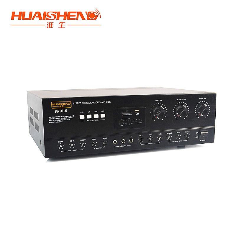 4.自动侦测VOD讯号源,可切换自动或手动 5.自动记忆原设定咪及音乐音量 6.频率响应:20Hz-46KHz 7.输出功率: 120W+120W 8.外形尺寸: 420X125X330MM