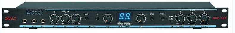 DSP-100是为专业卡拉OK而设计的前级放大器,具有99种数码混响效果。音乐、混响、麦克风独立音量调整,内置超低音输出,分频点可调,麦克风高、中、低